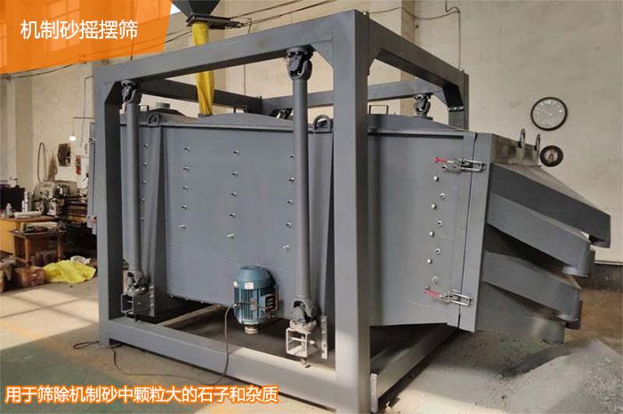 機制砂搖擺篩是配合制砂機使用的一種篩分設備,可以將制砂機制出的混合砂子篩除顆粒大的石子和雜質,從而提高砂子的質量。